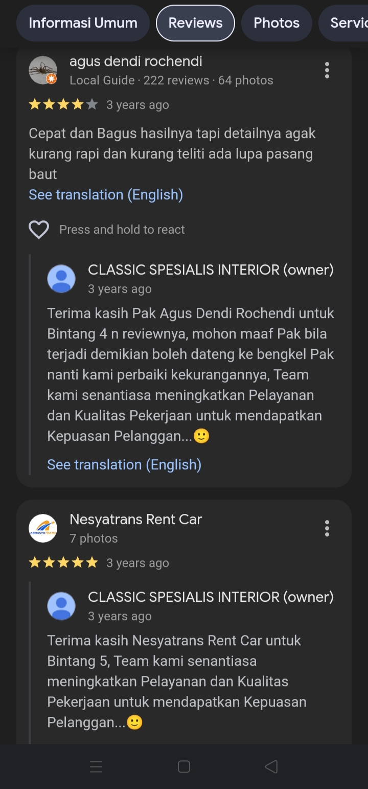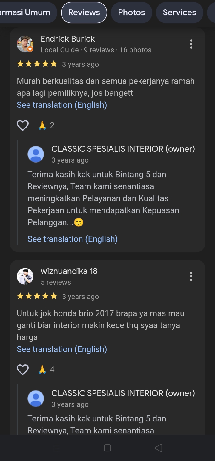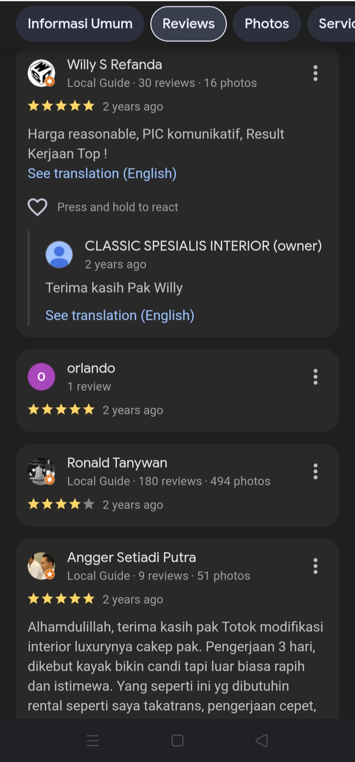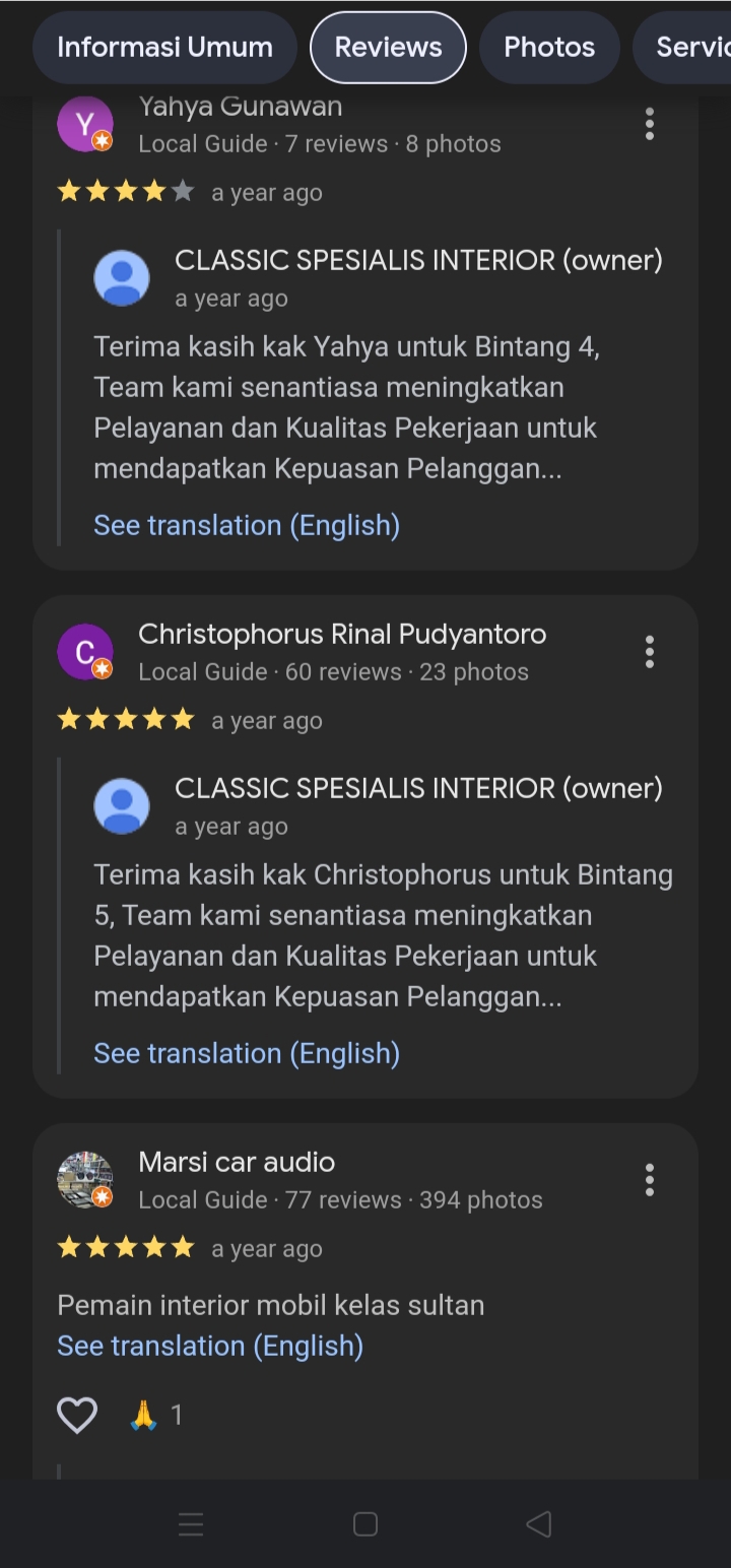 juga mengerjakan berbagai perbaikan, desain ulang, dan modifikasi pada bagian dalam mobil untuk meningkatkan kenyamanan, estetika, dan fungsionalitas kendaraan. Layanan ini meliputi berbagai aspek, mulai dari perbaikan kursi dan pelapis, pemasangan aksesori, hingga modifikasi sistem hiburan.