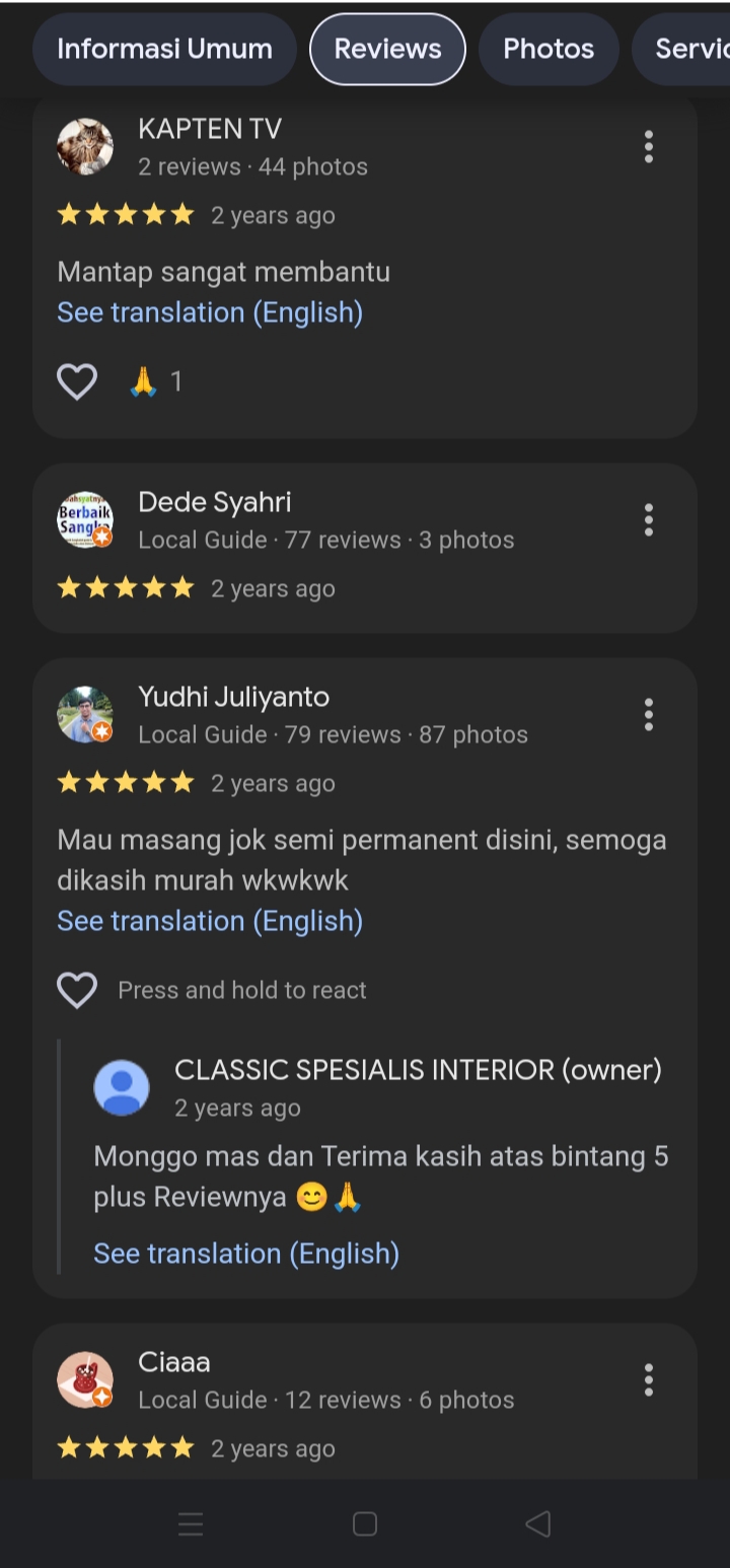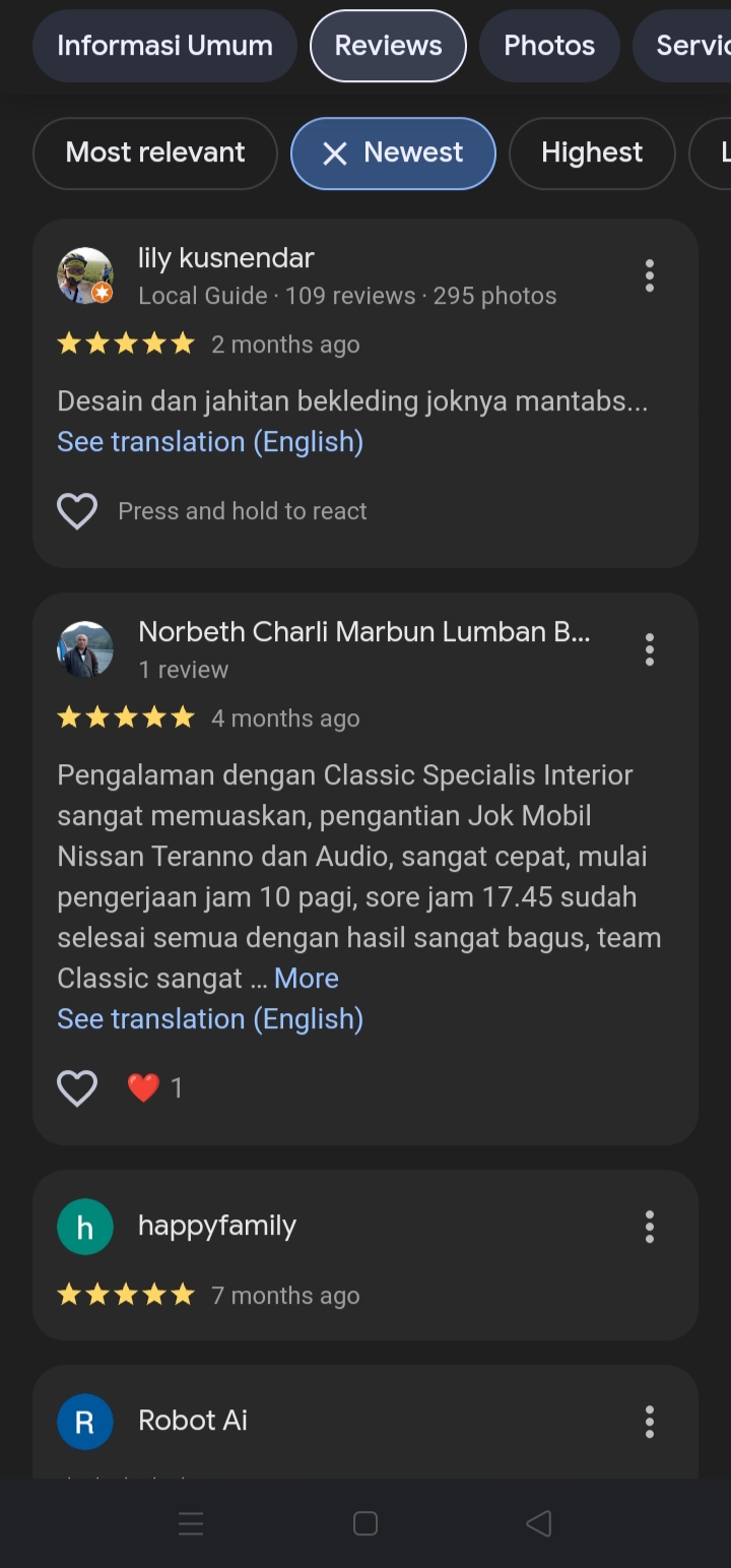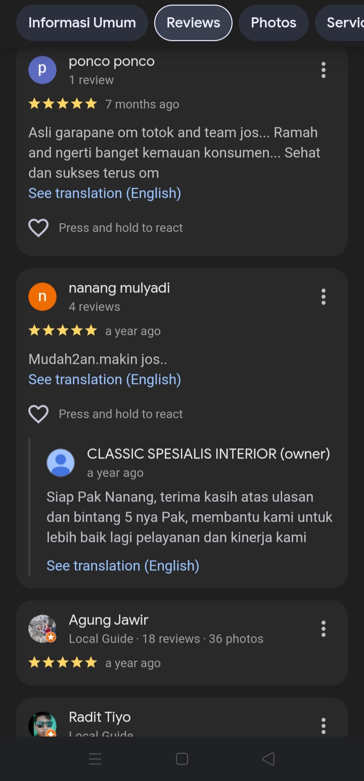 juga mengerjakan berbagai perbaikan, desain ulang, dan modifikasi pada bagian dalam mobil untuk meningkatkan kenyamanan, estetika, dan fungsionalitas kendaraan. Layanan ini meliputi berbagai aspek, mulai dari perbaikan kursi dan pelapis, pemasangan aksesori, hingga modifikasi sistem hiburan.