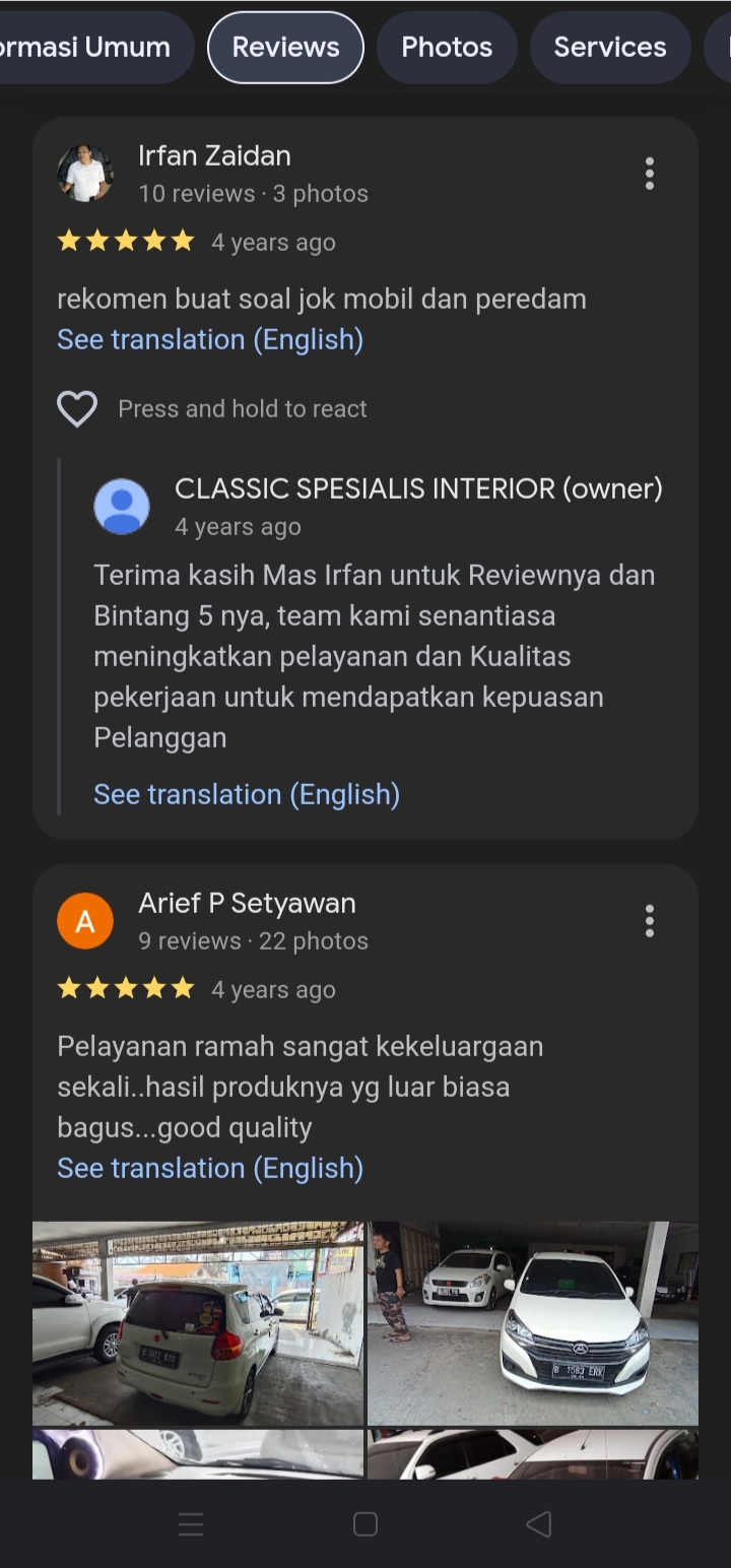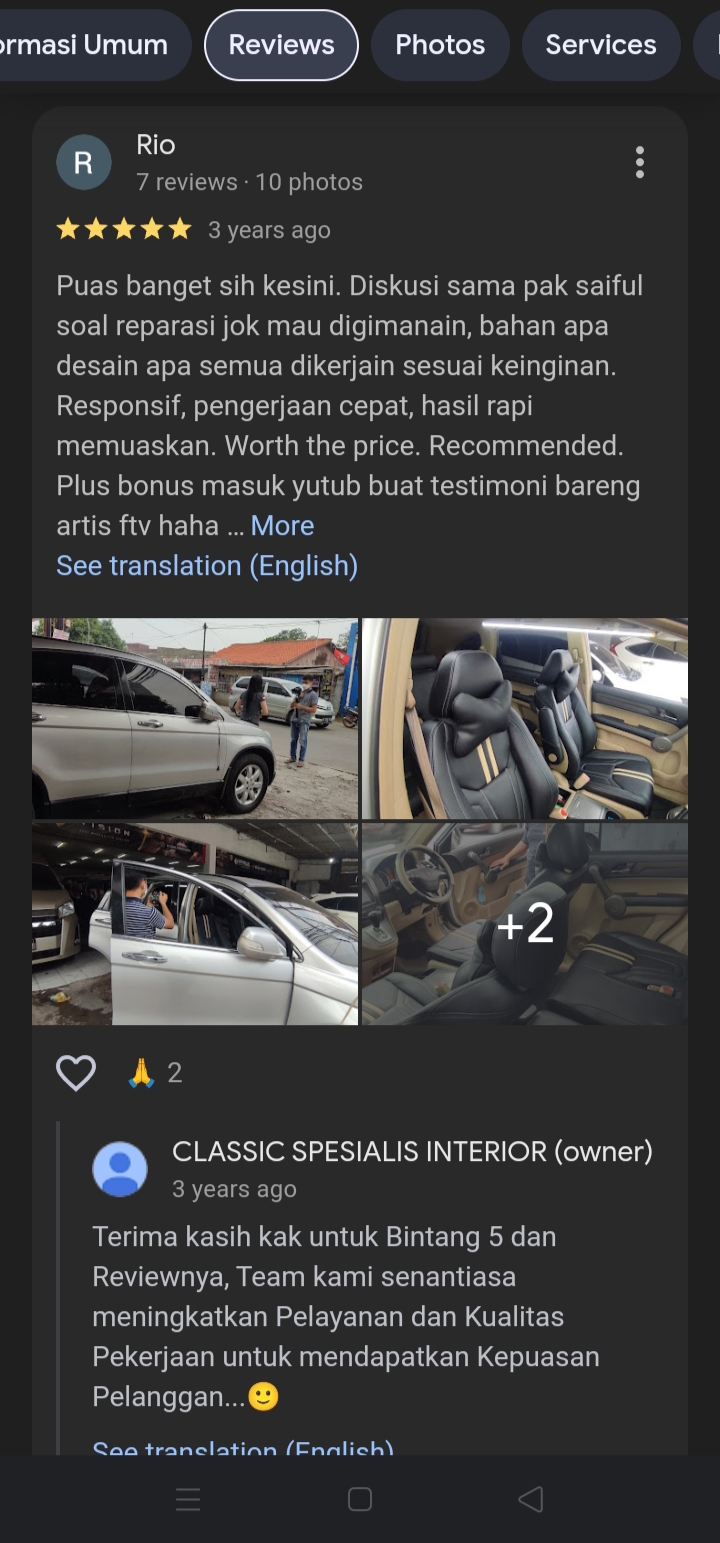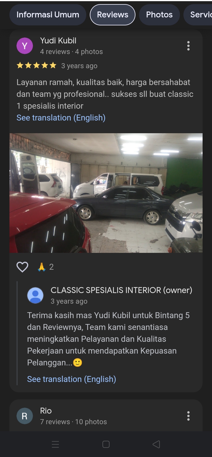 Bagi anda yang sedang mencari Pusat Variasi Mobil, bengkel workshop Jok Kulit Mobil dan Sarung Jok Mobil terbaik, maka Classic 1 Pusat Variasi Mobil merupakan pilihan yang tepat. Classic 1 Spesialis Interior merupakan satu-satunya bengkel workshop terbesar dan terkemuka di kota bekasi yang siap melayani konsumen se-Jabodetabek.
